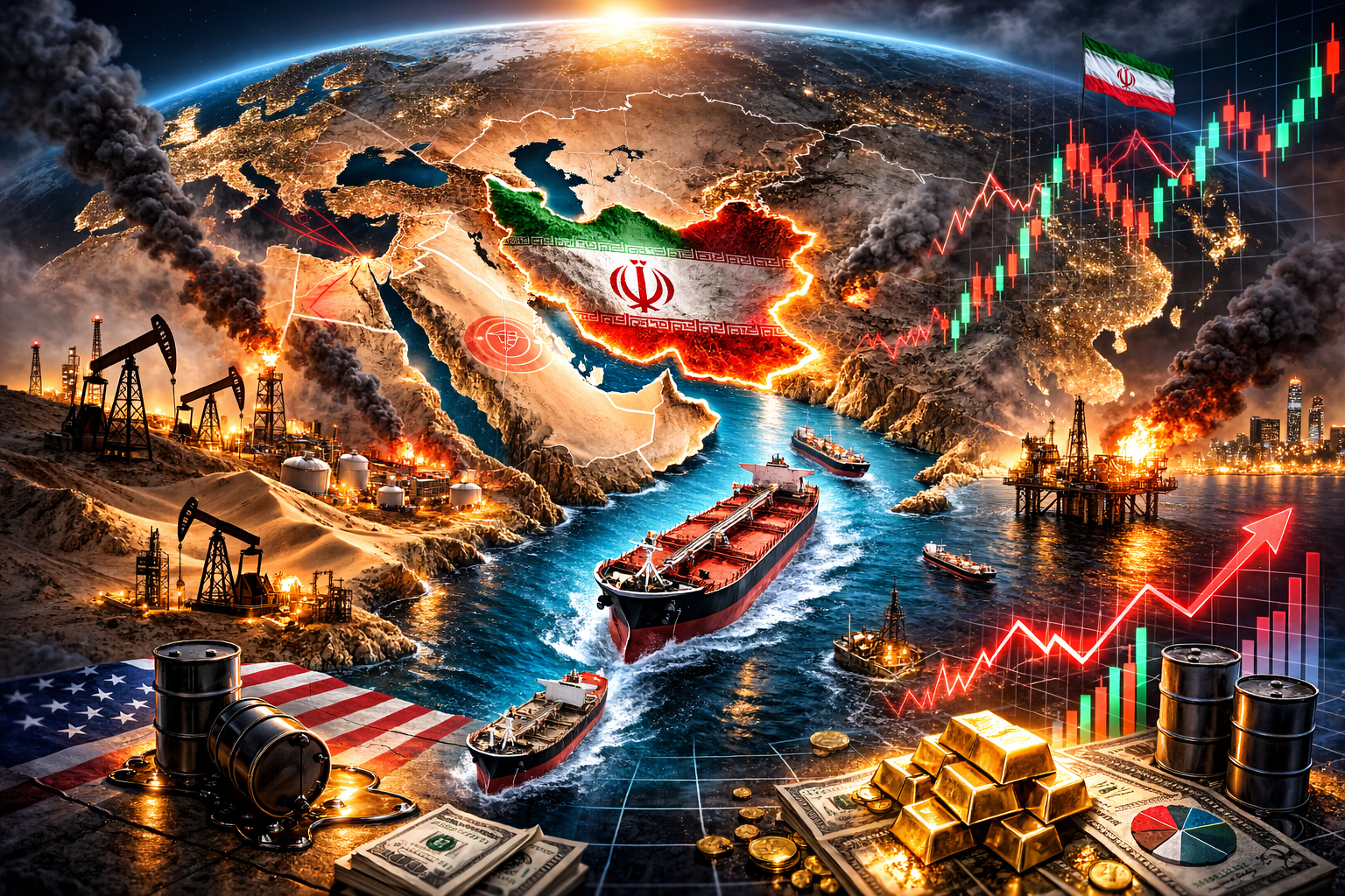 - 市場(価格高騰): WTI原油先物や金(ゴールド)価格が跳ね上がる。